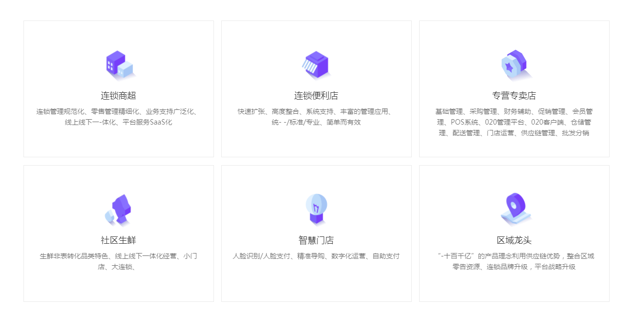 基于云服务构建,POS/ERP/CRM/SCM/B2C/020 配置齐全, 支持线上线下一体化运营 ,总部强管理模式和品类 管理思想,生鲜商品管理最佳业务实践,支持全渠道会员管理和全域营销,支持内部供应链和外部供应链协同管理。